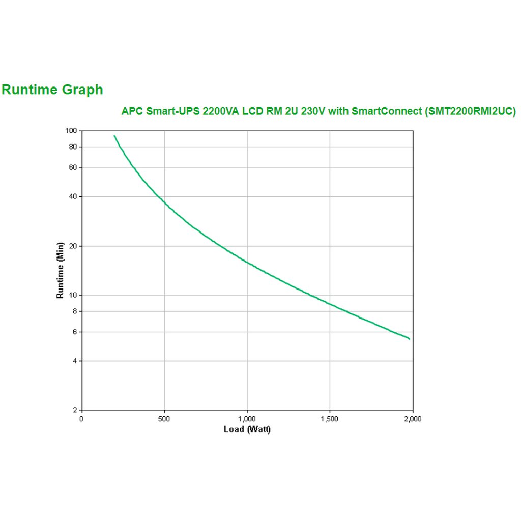 You can easily read the expected battery life in the runtime graph, which you can find between the product images. You can easily see how long the UPS supplies emergency power at a certain load.