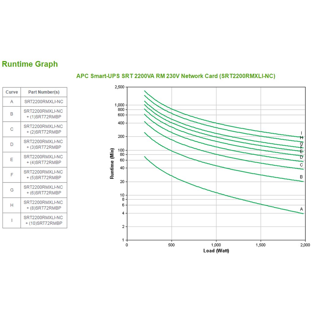 You can easily increase the number of minutes that the APC SRT2200RMXLI-NC can supply emergency power independently by connecting external battery packs (SRT72RMBP). A runtime of several hours is even possible.