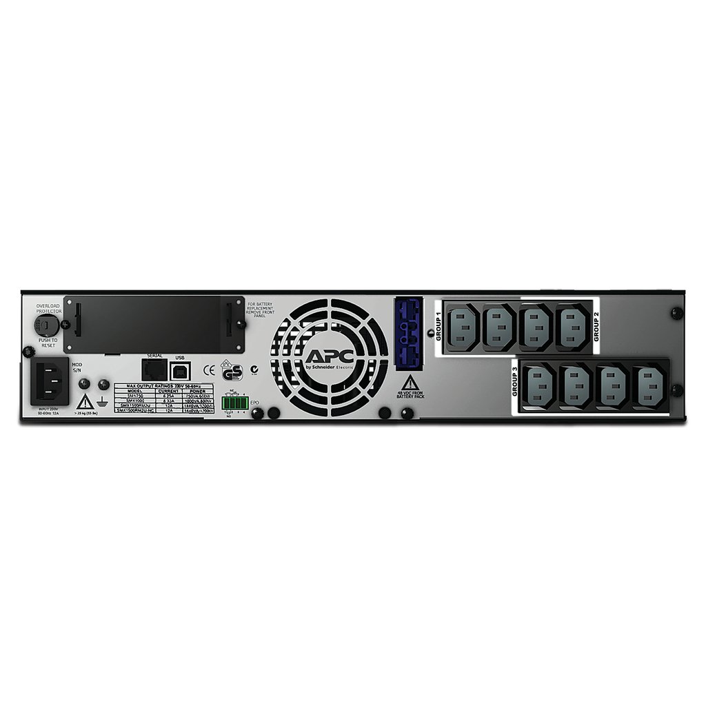 This APC Smart-UPS is designed for IT managers or network administrators to maintain business uptime, data transfer and continuity during prolonged power outages. The 1500VA line interactive 2U rack/tower UPS provides pure sine wave power to support critical electronics during power disruptions. The SMX comes with IEC 320 C14 input, 8x IEC 320 C13 outlets, and 2x IEC jumper cables. The UPS has a SmartSlot for optional Network Management Card that enables graceful shutdown of physical servers, virtual machines & HCI Clusters via PowerChute Network Shutdown. It comes with IEC 320 C14 input, 8x IEC 320 C13 outlets, and 2x IEC jumper cables. The UPS has a 3-year warranty, and the built-in lead-acid battery has a 2-year warranty. This uninterrupted power supply can connect to EcoStruxure IT or third-party centralized management platforms. The SMX UPS has a 3-year warranty, and the built-in lead-acid battery has a 2-year warranty. This is compatible with dedicated user-replaceable battery, and the APC replacement battery cartridge helps restore UPS performance to the original specifications. The Smart-UPS comes with a pair of tower-mounting stabilizing feet and rack-mounting brackets. The 3 switchable outlet groups allow more granular management of the power supplied to your devices. The Emergency Power Off feature enables the UPS to remotely shutdown during emergencies.
