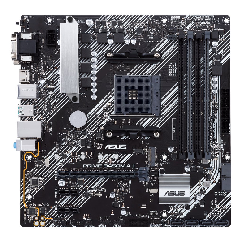 Prime B450M II motherboard provides all the fundamentals to boost daily productivity, so your system will be ready for action with stable power, intuitive cooling and flexible transfer options.