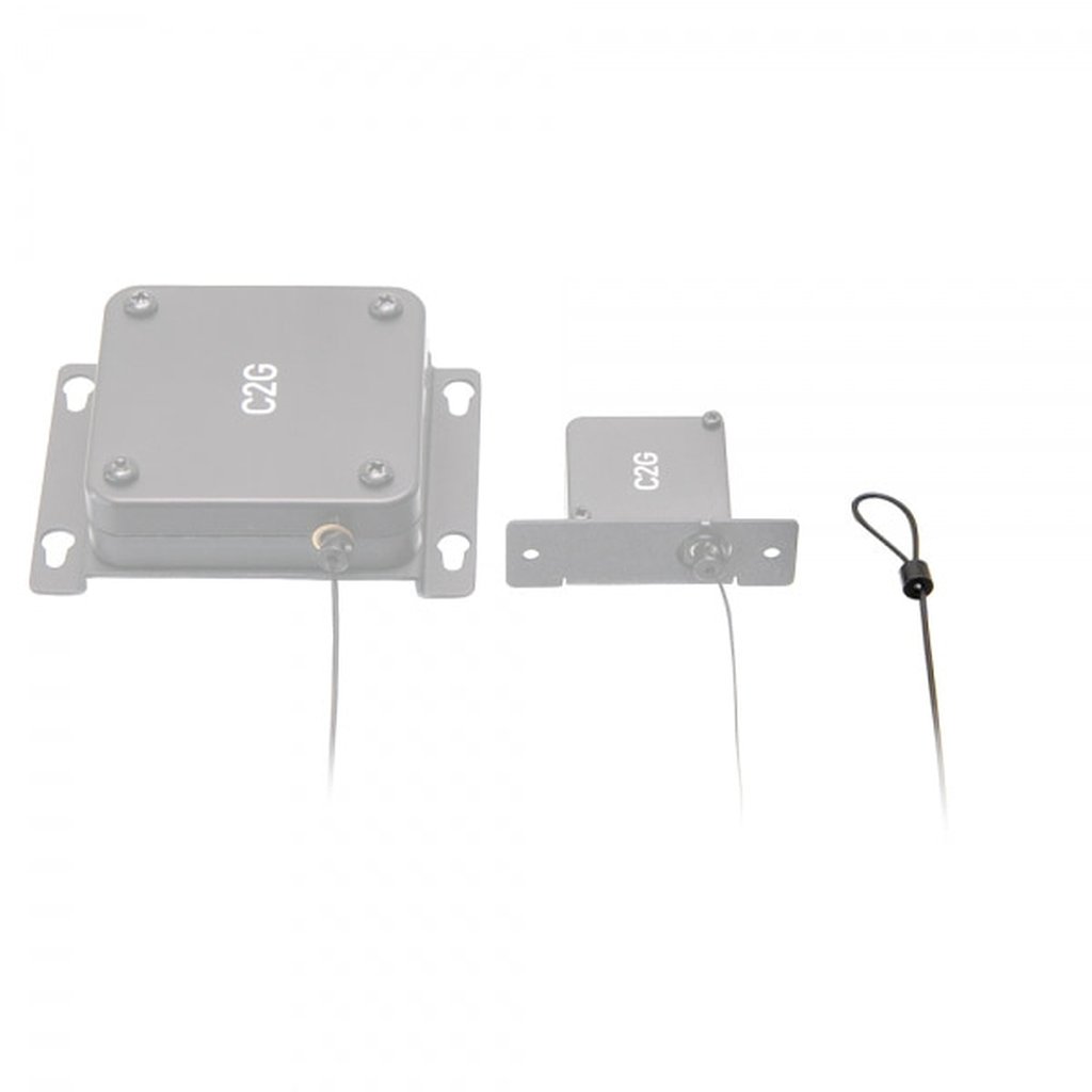 The universal cable mount attaches directly to the in-room HDMI display cable, ensuring that the adapters are always within reach. The adapter ring slides to the HDMI connector when needed and out of the way when not in use, reducing strain on the HDMI cable and clutter on the tabletop. The optional stopper fits on HDMI cables from 5mm to 10mm in diameter and prevents the adapters from sliding too far down the cable.