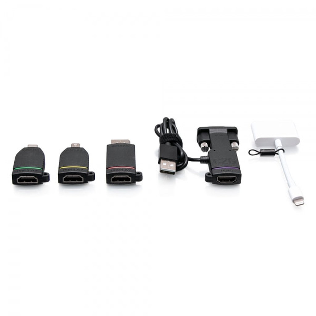The Patent Pending Universal 4K HDMI Adapter Ring is the perfect addition to conference rooms, huddle spaces, lecture halls, or classrooms to make sure that anyone can connect. The standard configuration includes the adapters to connect nearly any device to the in-room display while supporting up to a 4K video resolution. Choose from HDMI to DisplayPort, Mini DisplayPort, USB-C, Lightning, or VGA to meet connectivity challenges.