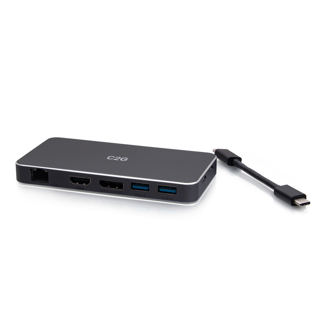 C2G USB-C 7-in-1 Dual Display MST Docking Station with HDMI, DisplayPort, Ethernet, USB, and Power Delivery up to 100W – 4K 60H
