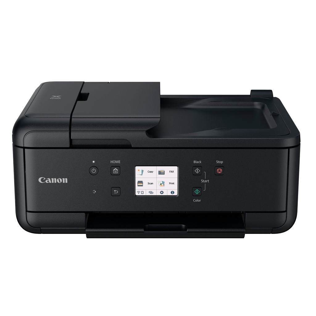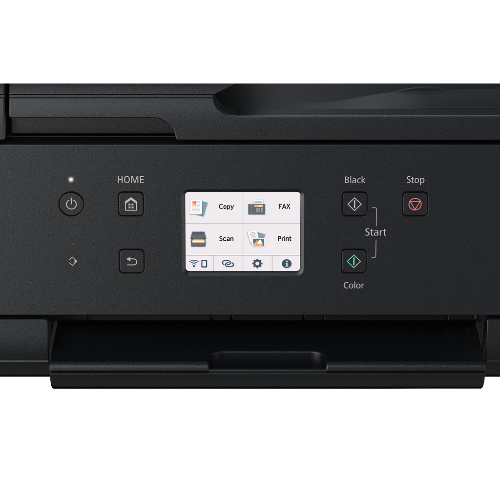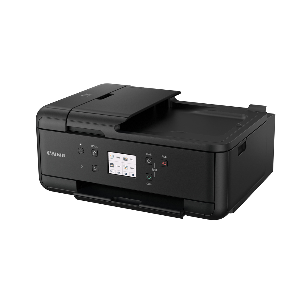 Print, copy, scan and fax using a single compact device with this inkjet multifunction printer. Ideal for small and home office printing, it offers flexible Wi-Fi connectivity, wireless direct printing from mobile devices, and cloud printing and scanning via the Canon PRINT app using Cloud Link. The 5 individual ink photo and document printer creates rich, vibrant and detailed borderless colour photos up to A4 size and pin-sharp text documents that are crisp and easy to read. The 20-sheet ADF and front and rear paper feeding ensures excellent productivity. Make savings with optional XL and XXL ink cartridges and automatic 2-sided printing, all easy to use and set up via a QR code and large 7.5 cm colour touchscreen.