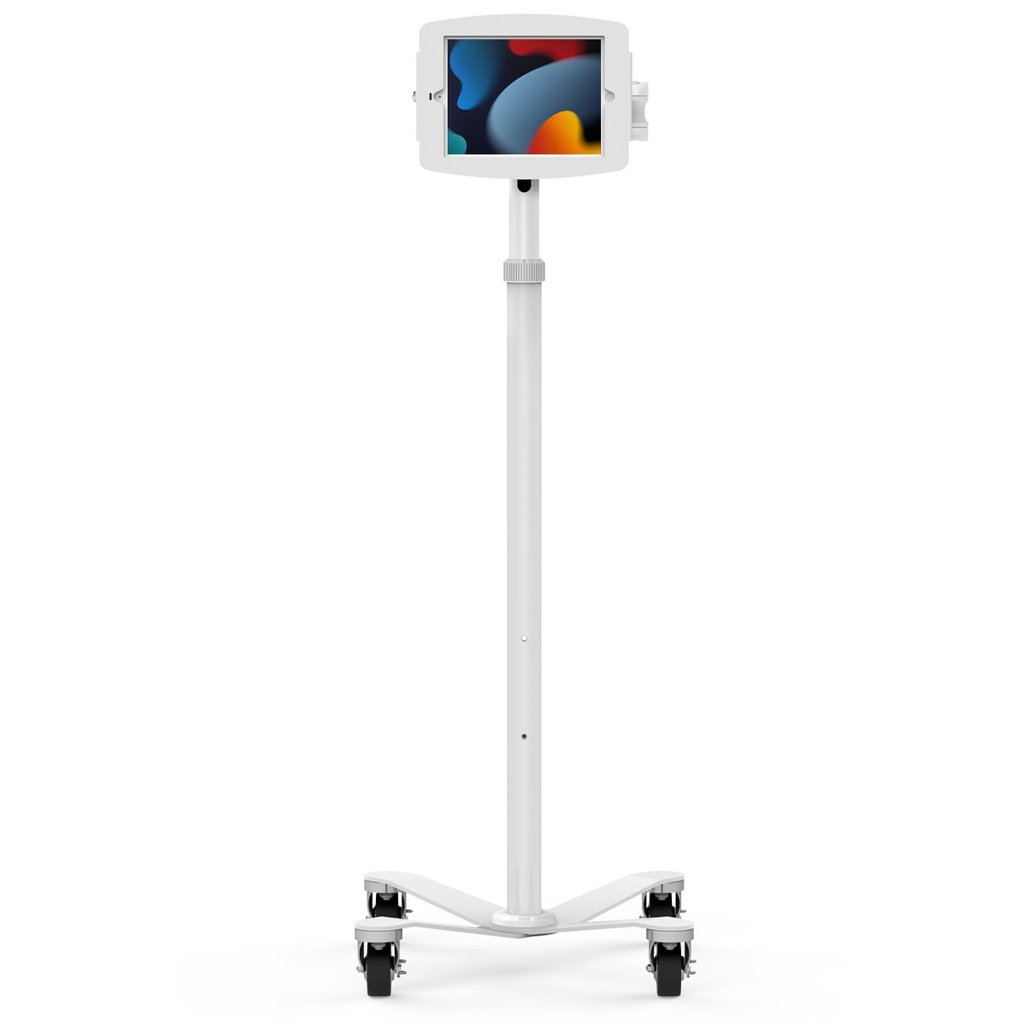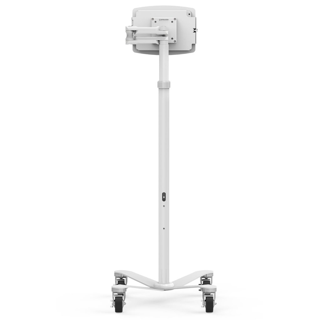 iPad Mini 8.3″ (6th-7th gen), “Space” Enclosure & Medical Rolling Cart Extended for VESA Mounts, White