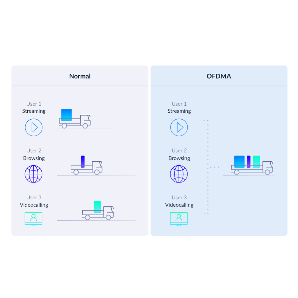 Small data packets destined for multiple devices are transmitted together and never have to queue up again. Perfect for bandwidth-hungry devices battling for bandwidth.