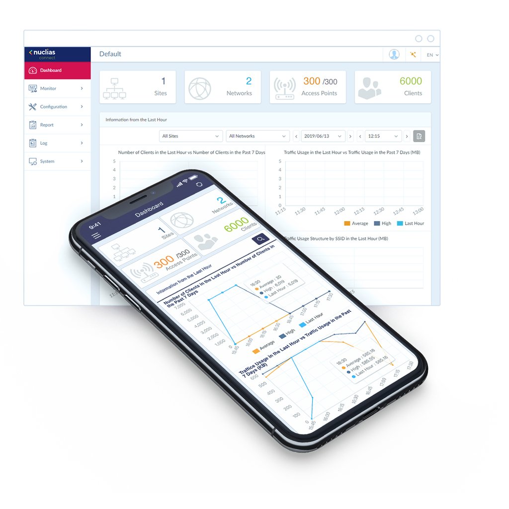 Rapidly setup, manage and monitor APs locally via our free network management software, or remotely with the Nuclias Connect app