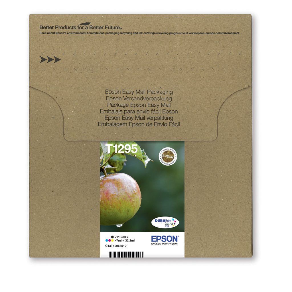 The complete set consisting of all four single cartridges: cyan, magenta, yellow, and black. For crisp, water-proof, and long-lasting results on practically every paper. Produced from recyclable, light-weight brown cardboard, Epson’s new EasyMail Packaging is designed to keep the contents secure while being small enough to fit through most European letter boxes. Its simple tear open seal saves time and removes frustration. Each product is clearly labelled with identification imagery to make product recognition easy.