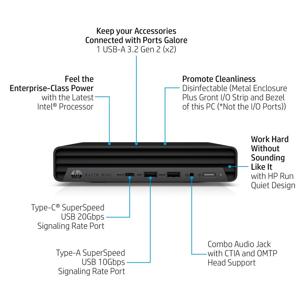 Elite Mini 800 G9 Desktop PC, Windows 11 Pro (preinstalled with Windows 10 Pro Downgrade), Intel® Core™ i7, 16GB RAM, 512GB SSD