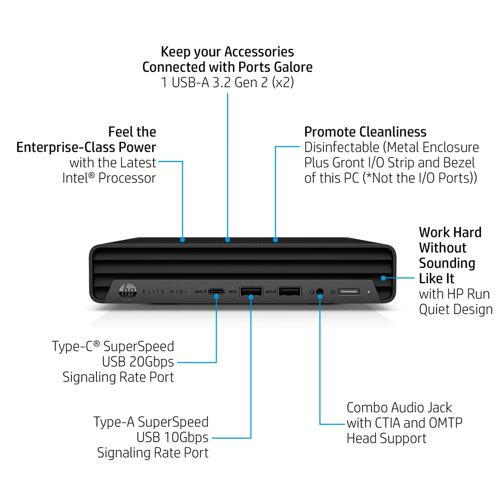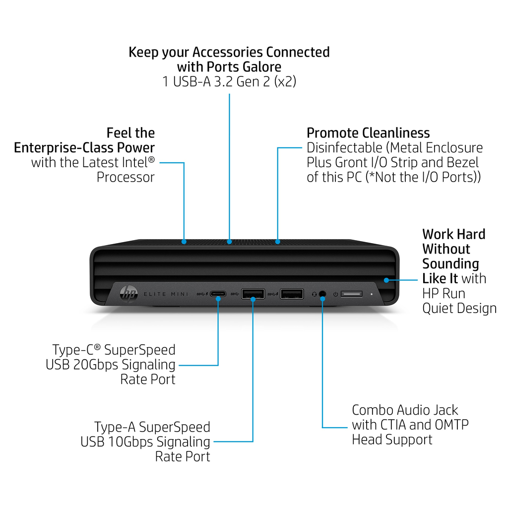 Elite Mini 800 G9 Desktop PC, Windows 11 Pro (preinstalled with Windows 10 Pro Downgrade), Intel® Core™ i7, 16GB RAM, 512GB SSD