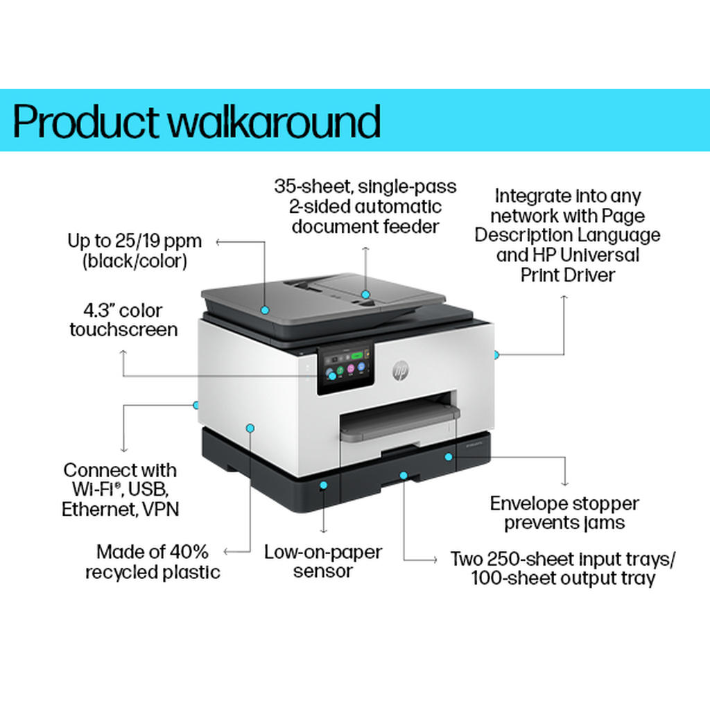 HP OfficeJet Pro 9130b Wireless All-in-One Color Printer, Two-sided printing; Copier, Scanner