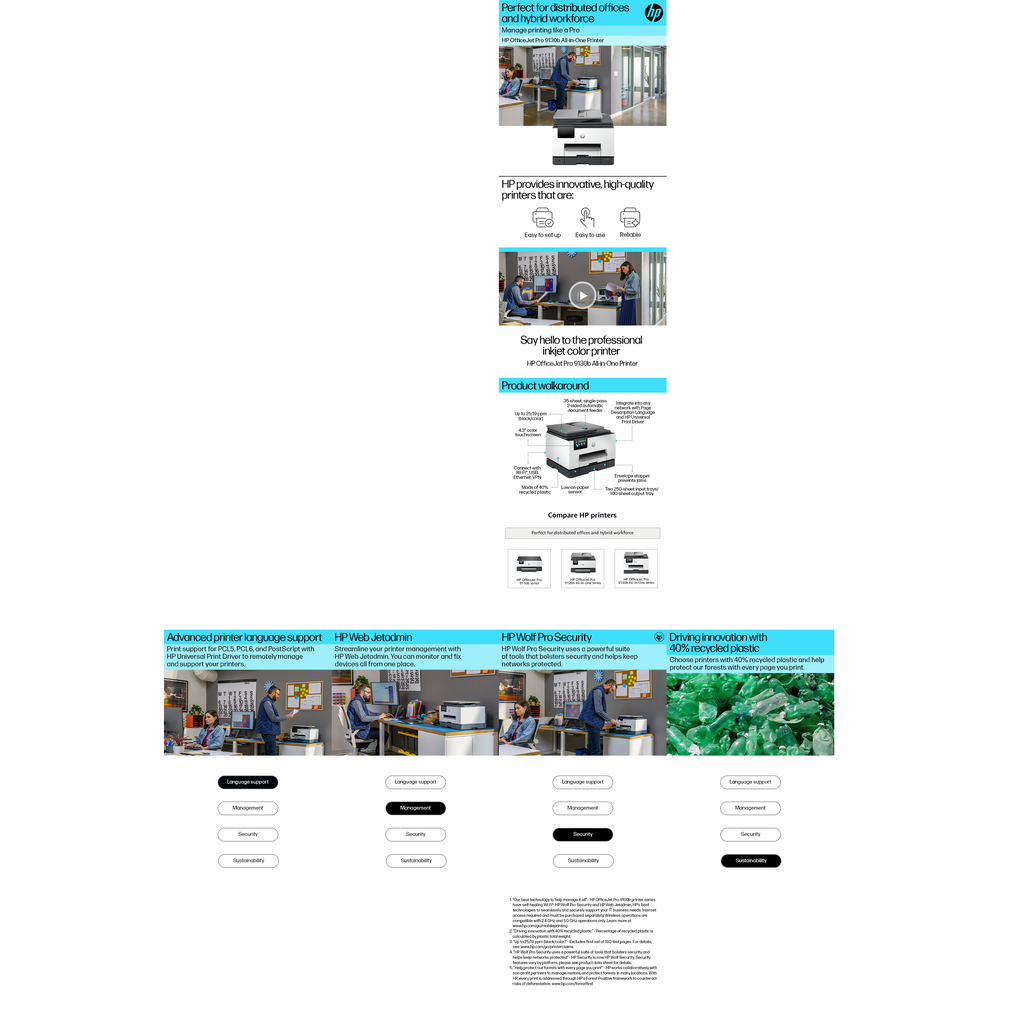Manage printing like a Pro. The professional colour inkjet printer for distributed offices/hybrid workforce from the World’s #1 Printer Company, paired with our best technology to help manage it all. This streamlines work into any network with extra performance features.[1,2].