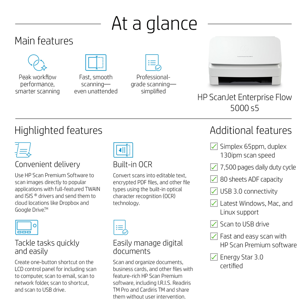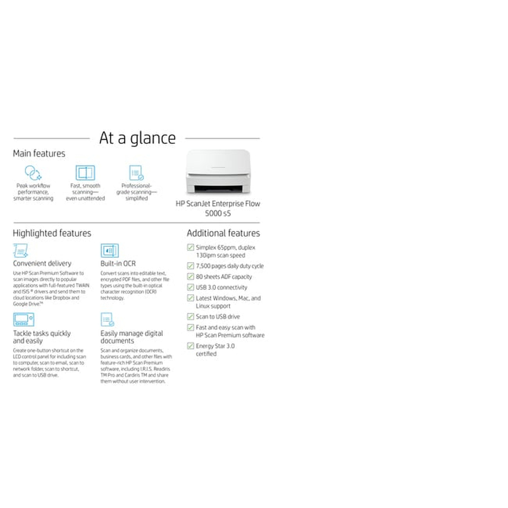 HP Scanjet Enterprise Flow 5000 s5 Sheet-fed scanner 600 x 600 DPI A4 White