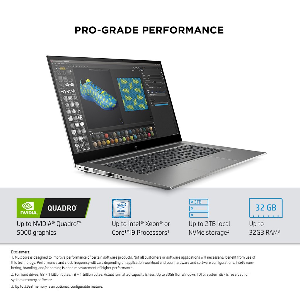ZBook Studio G7 Mobile Workstation, 15.6″, Windows 10 Pro 64, Intel® Core™ i9, 32GB RAM, 1TB SSD, NVIDIA® Quadro® T2000, 4K UHD