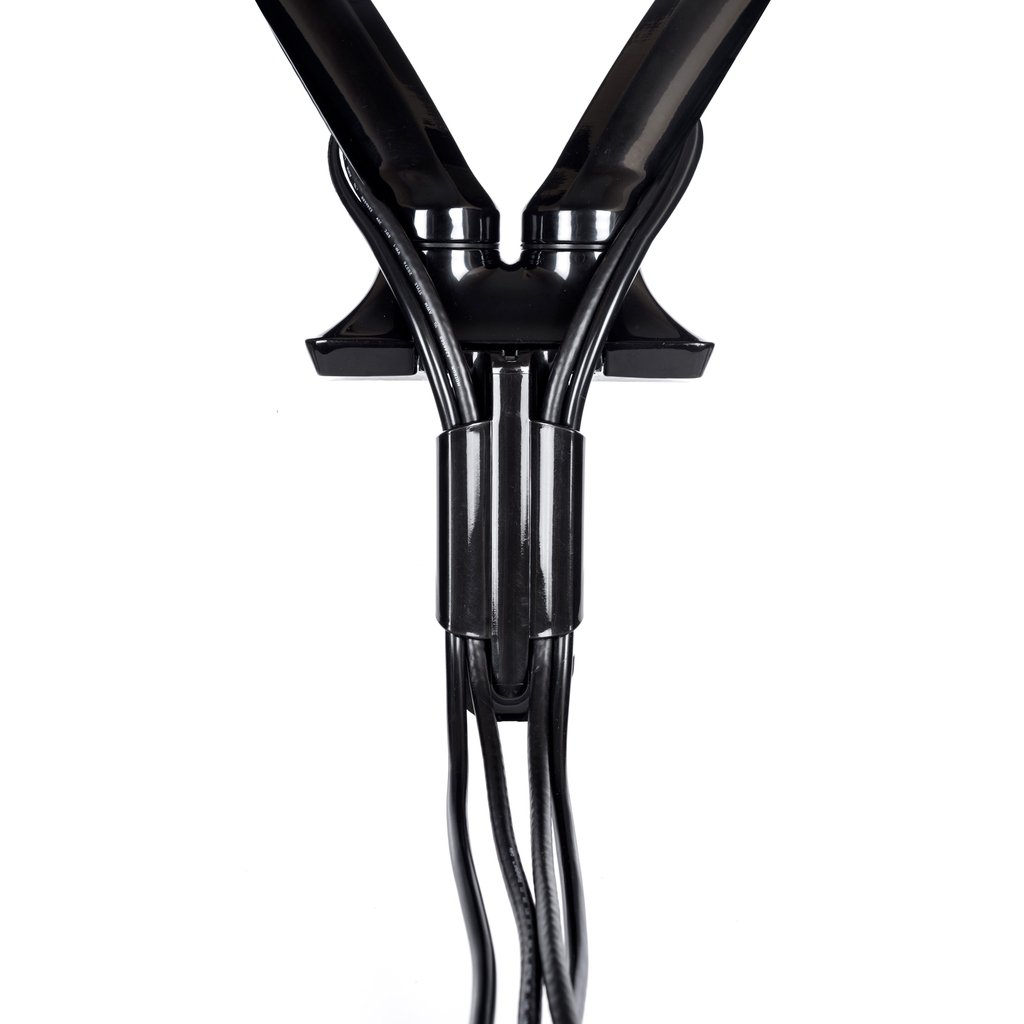 The iiyama DS3002C-B1 is a desk mount (grommet or clamp) for two flat screens up to 27”. Using the arm you save space on your desk and thanks to the cable management system it is easier to keep your workplace tidy. But what is more important, offering broad adjustment capabilities including tilt, swivel, height and rotation, the dual gas spring arm makes sure you can easily adjust the position of the screens to your preferences assuring ergonomic body posture.