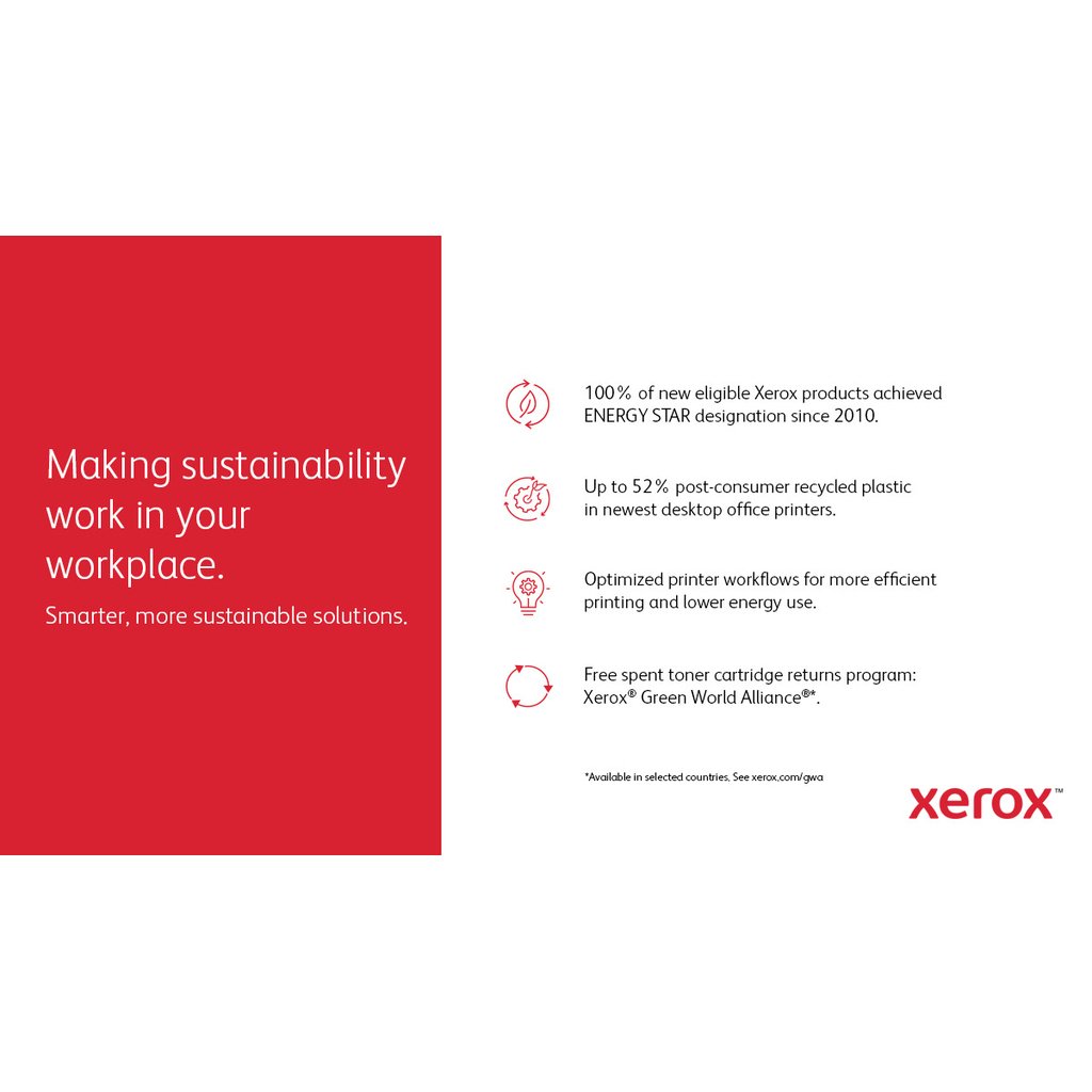 Reliability and performance that exceeds demands and expectations. Is personalization, future readiness and built-in security too much to ask for? Not for the demands of modern work. Small enough to fit where you need it and fast enough to support high print volumes, the Xerox® VersaLink® B620 delivers flawlessly for high-performing teams with print-centric needs. Compact Without Compromise: Make the most out of every square foot of your office space with the small footprint of the B620. This Workplace Assistant takes up less space but gets just as much work done. It’s perfectly sized for scaled-back office spaces and hybrid work environments, where space is a premium and there’s no room for disruption. Make Work Easier: Get up to speed in no time with a tablet-like touch screen that balances simplicity and time-saving efficiency. The familiar, intuitive 5-inch user interface (UI) guides you through tasks, and simplifies every print interaction, making viewing printer status and submitting or releasing print jobs quick and easy. Mobility features, such Apple® AirPrint®, Mopria, and optional WiFi Direct¹, take the stress out of printing directly from your favorite mobile devices. And Xerox® @PrintByXerox provides hassle-free printing from any email-enabled device (smartphone, tablet, computer, Chromebook) via the cloud, so you can print easily and securely from anywhere. Disruption-ready Technology: Your work is always evolving, so you need technology that’s always a step ahead. The Xerox® ConnectKey® Technology-enabled VersaLink adjusts quickly to the evolving needs of your organization. Advanced tools such as Xerox® Easy Assist, Xerox® Print and Scan Experience provide enhanced productivity features that deliver easier ways to use and manage your printer. And with access to a portfolio of cloud-hosted apps via the Xerox App Gallery you can effortlessly connect and print from popular cloud repositories directly from the B620 user interface. Smarter, More Sophisticated Security: The Security Dashboard simplifies printer security management on the VersaLink B620. A comprehensive range of proactive security features stop security threats where they start, preventing malicious attacks, proliferation of malware, unauthorized access or changes, and breaches that lead to downtime. To simplify security event reporting and management, VersaLink Devices can integrate with Security Information and Event Management (SIEM) Tools. Proactive features constantly monitor, detect and block threats in real time. And automated security responses provide invaluable time savings and peace of mind. Quality That’s a Cut Above: Delivering a high-resolution output of 1200 x 1200 dpi, with crisp text and sharp lines to elevate your important documents. Sustainable Through and Through: Made up of more than 25% post-consumer recycled plastic, the VersaLink gives new meaning to environmental responsibility. This device meets or exceeds the strictest, globally recognized standards for product environmental performance, including EPEAT, Blue Angel and ENERGY STAR®. In addition, the Xerox® Green World Alliance® program simplifies collection, reuse and recycling of spent imaging supplies, and we are working to minimize the waste associated with our devices.