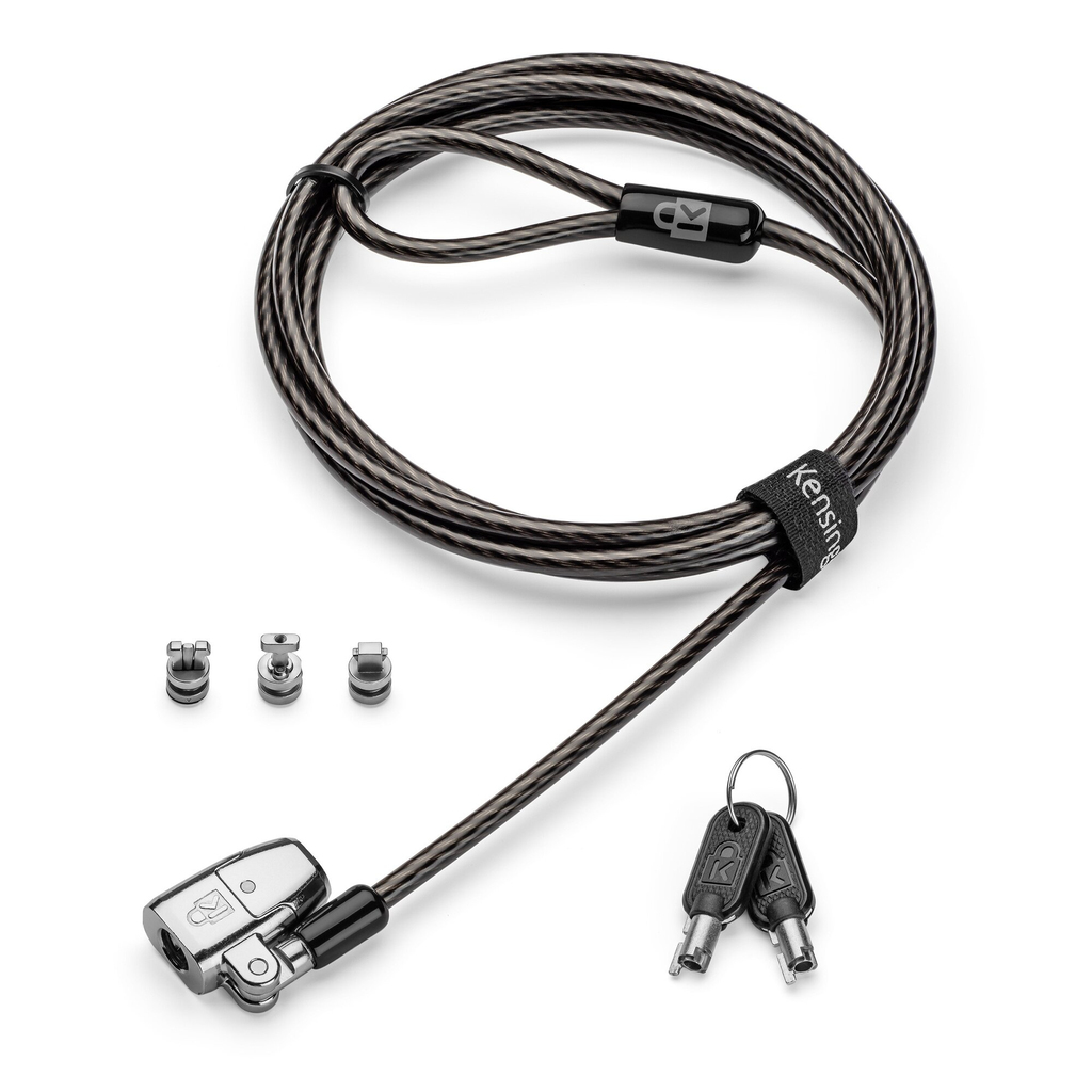 The ClickSafe® 2.0 3-in-1 Keyed Laptop Lock fits any laptop with a Standard T-Bar, Wedge-Shaped or Nano security slot, allowing it to be locked down, regardless of brand or generation. The master keyed option allows administrative access for IT managers, while simplifying key management. Features include patented anti-pick Hidden Pin™ technology, ClickSafe® locking technology allowing the lock head to be attached with one hand in a single click, a cut-resistant carbon-steel cable, a pivoting and rotating head for flexible movement and easy key insertion, Register & Retrieve™ for quick, secure and easy key replacement, together with a five-year warranty backed by Kensington, inventor and worldwide leader in laptop security locks.