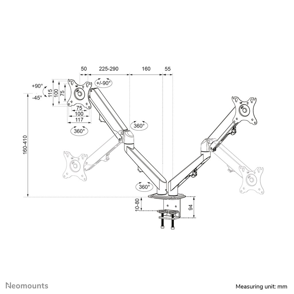 Neomounts DS70-700BL2 Monitor arm 17-27″ – gas spring