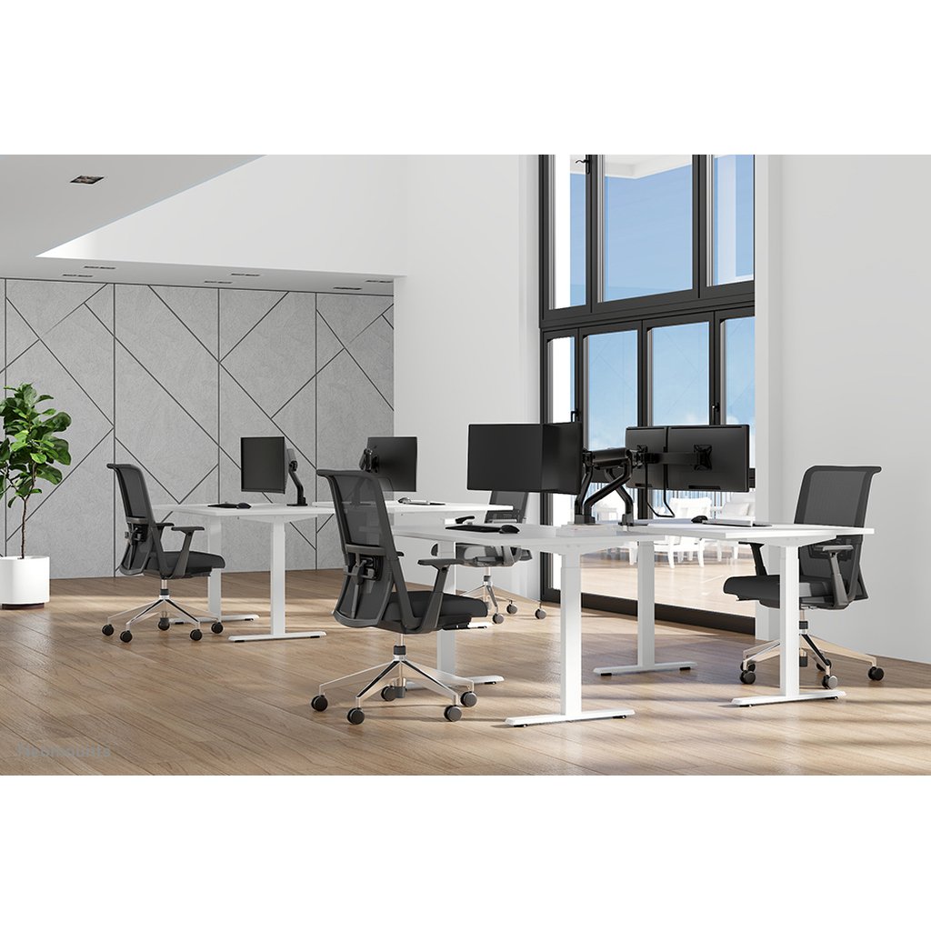 The Neomounts DS70S-950BL1 NEXT One is a full motion desk mount for screens up to 49″. The DS70S-950BL1 is a true all-in one solution for small to large displays. The NEXT One features a strengthened head specifically designed to also support curved ultra-wide screens and features a higher maximum weight capacity up to 18 kg (curved 15 kg). The versatile tilt (180°), rotate (360°) and swivel (180°) technology allows the mount to change to any viewing angle to fully benefit from the capabilities of the screen. Additionally, the mount has gas spring height adjustment (20-52 cm) and depth adjustment (8,8-62,5 cm), to create the perfect working position.