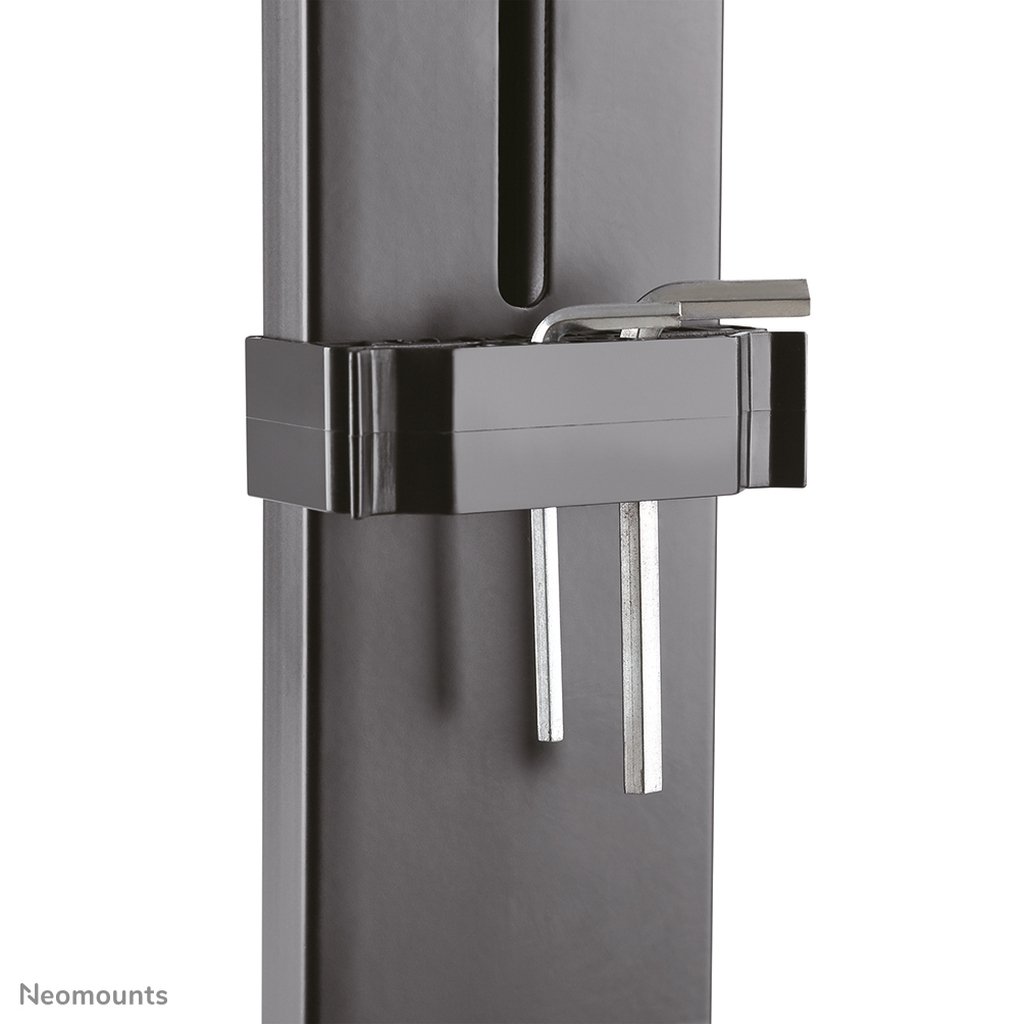 Neomounts’ versatile tilt (20°), rotate (360°) and swivel (20°) technology allows the mount to change to any viewing angle to fully benefit from the capabilities of the flat screen. The mount is manually height adjustable from 26 to 45 centimetres. Depth 5 centimetres.