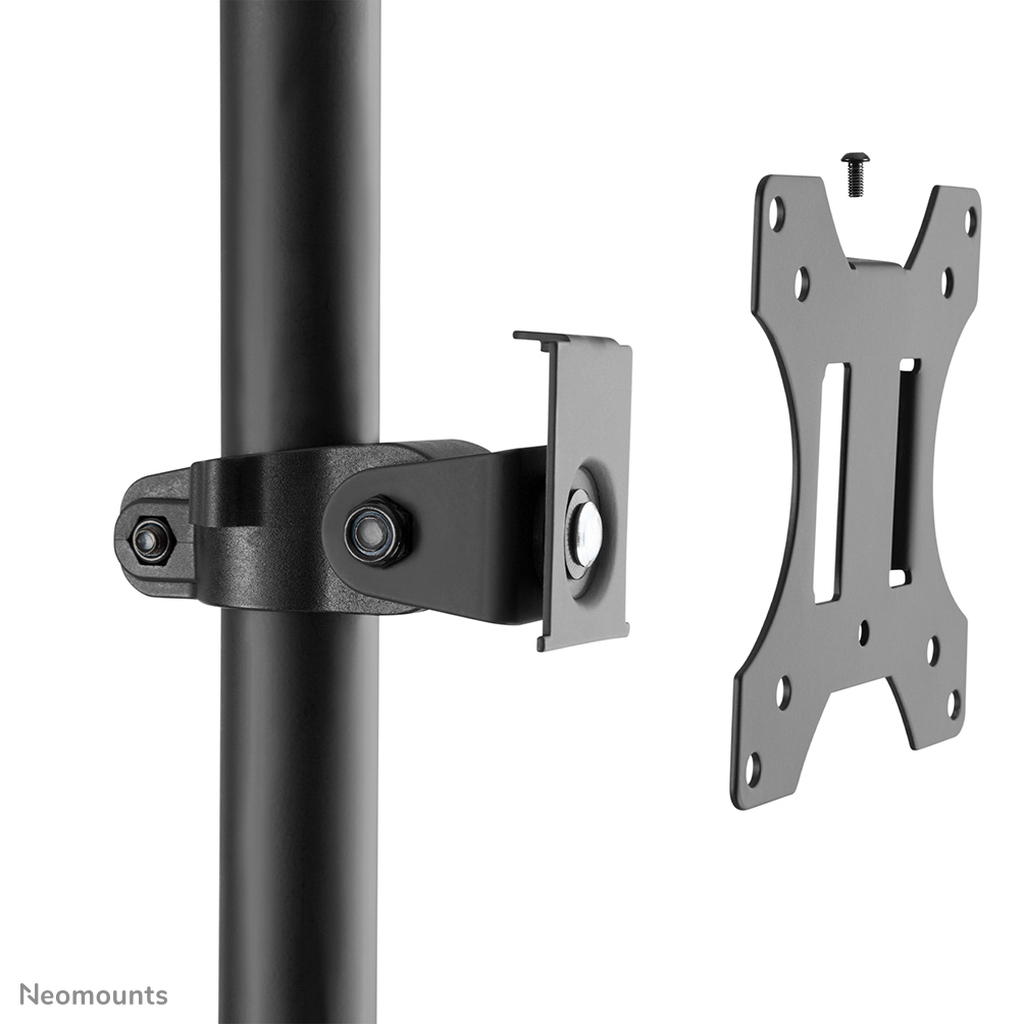 Neomounts FPMA-MOBILE1700 has one pivot point and is suitable for screens up to 32″ (81 cm). The weight capacity of this product is 3-8 kg for the flat screen, 10 kg for the PC and 2 kg for keyboard and mouse. The stand is suitable for screens that meet VESA hole pattern 75×75 & 100x100mm. Different hole patterns can be covered using Neomounts VESA adapter plates. Speedy assembly and installation.