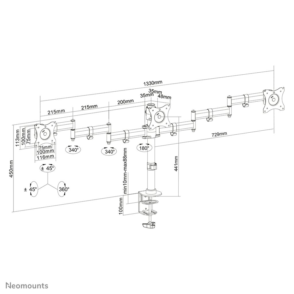 Neomounts NM-D135D3BLACK Triple monitor arm – 10-27″ – 0-8 kg/screen – black