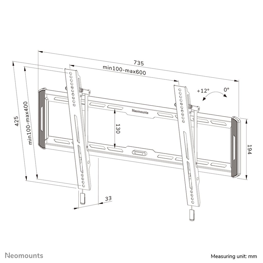 The LEVEL-550 wall mount has a depth of 3,3 cm and is suitable for screens that meet VESA hole pattern 100×100 to 600×400 mm.