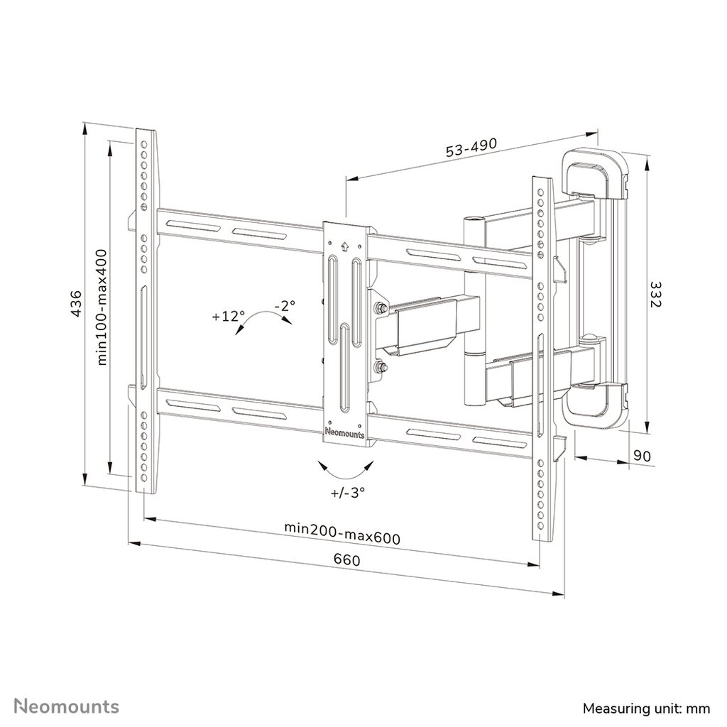 Neomounts LEVEL-550 WL40-550BL16 Full motion TV mount wall – 40-65″ – max 40 kg – VESA 200×100-600×400 – d 5,3-49 cm – Easy Install-model – black