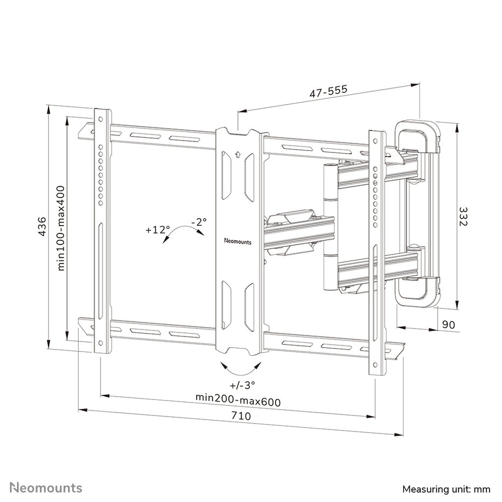 Neomounts LEVEL-850 WL40S-850BL16 Full motion TV mount wall – 40-70″ – max 45 kg – VESA 200×100-600×400 – d 4,7-55,5 cm – level adjustment – Rapid Install-model incl. fixing template – black