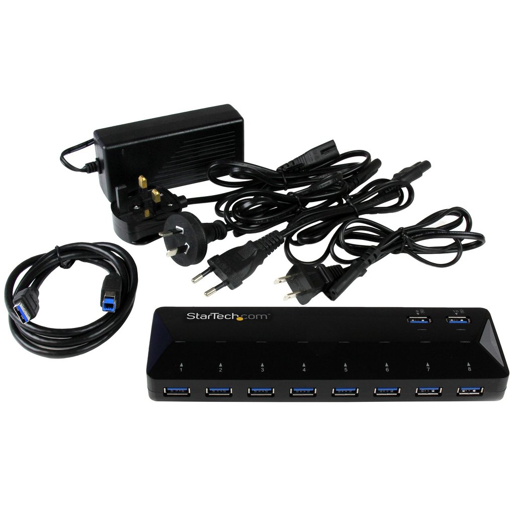 StarTech.com 10 Port USB 3.0 Hub with Charge & Sync Ports – 8 x USB-A, 2 x USB-A Fast Charge Ports – Multi Port Powered USB Hub (ST103008U2C)