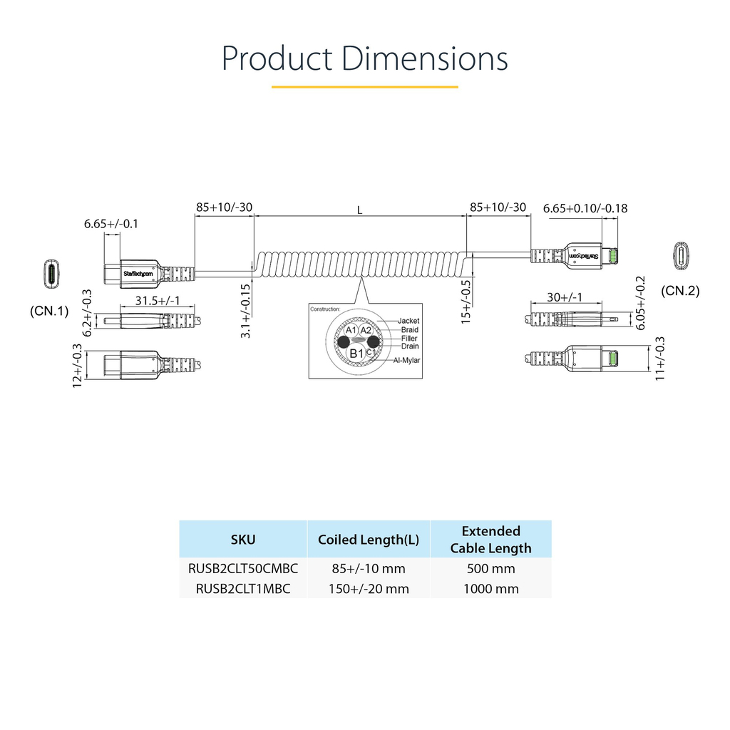 | Jacket material | Thermoplastic elastomer (TPE) |