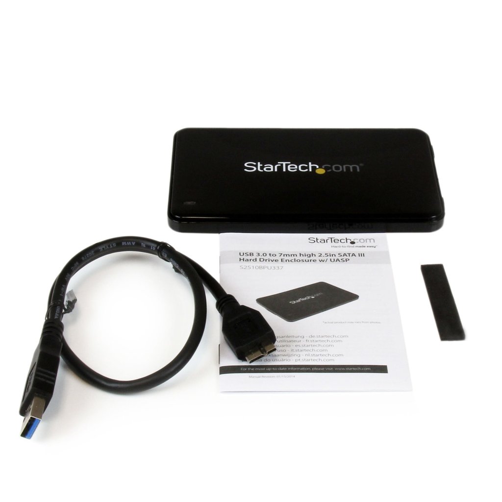 StarTech.com 2.5in USB 3.0 SATA Hard Drive Enclosure w/ UASP for Slim 7mm SATA III SSD / HDD – 7mm 2.5″ Drive Enclosure – SATA 6 Gbps (S2510BPU337)