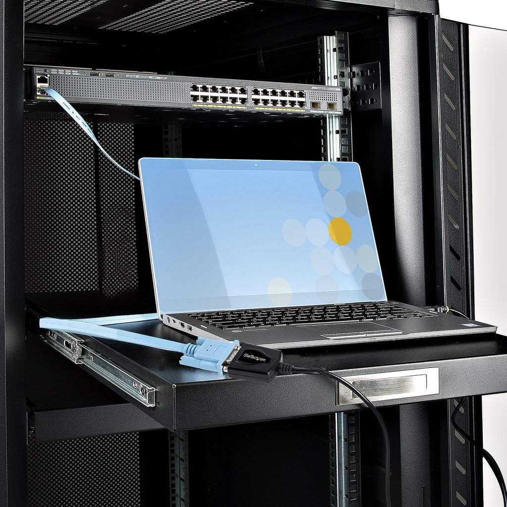 The USB to RS232 cable is a convenient connectivity solution that bridges the gap between current and legacy technologies. The small footprint, data rate of up to 921.6 kbps, COM retention, and 3 ft (0.91 m) cable length makes it the ideal solution for the IT industry, point of sales (POS), industrial applications, AV, and office setups.