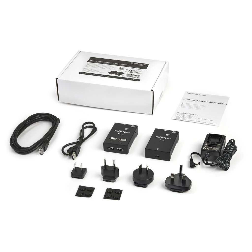 StarTech.com 4-Port USB 2.0 Extender – 130ft (40m) USB Over Cat5/Cat6 Extender – Compact USB 2.0 Over Ethernet Extender (USB2004EXTV)