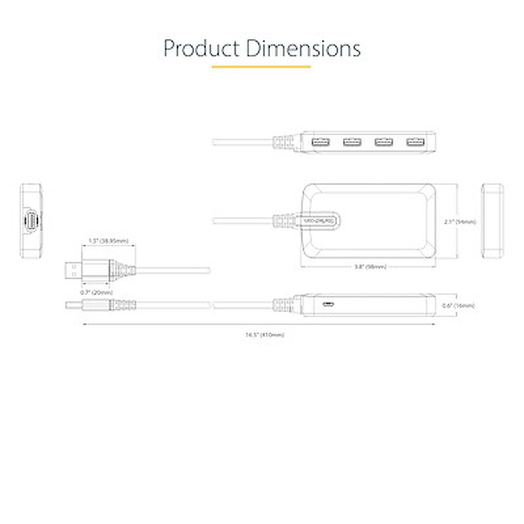 USB Type-A to 4x USB Type-A | USB 3.2 Gen 1 (5Gbps) | Auxiliary Micro USB Power Input (up to 4.5W)