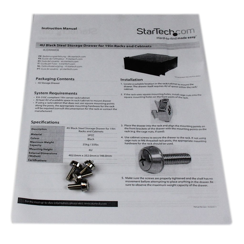 StarTech.com 4U Rack Mount Drawer – 55 lb (25 kg) – 4U Steel Storage Rack Drawer for 19″ AV / Sever / Network Equipment Rack or Cabinet (4UDRAWER)