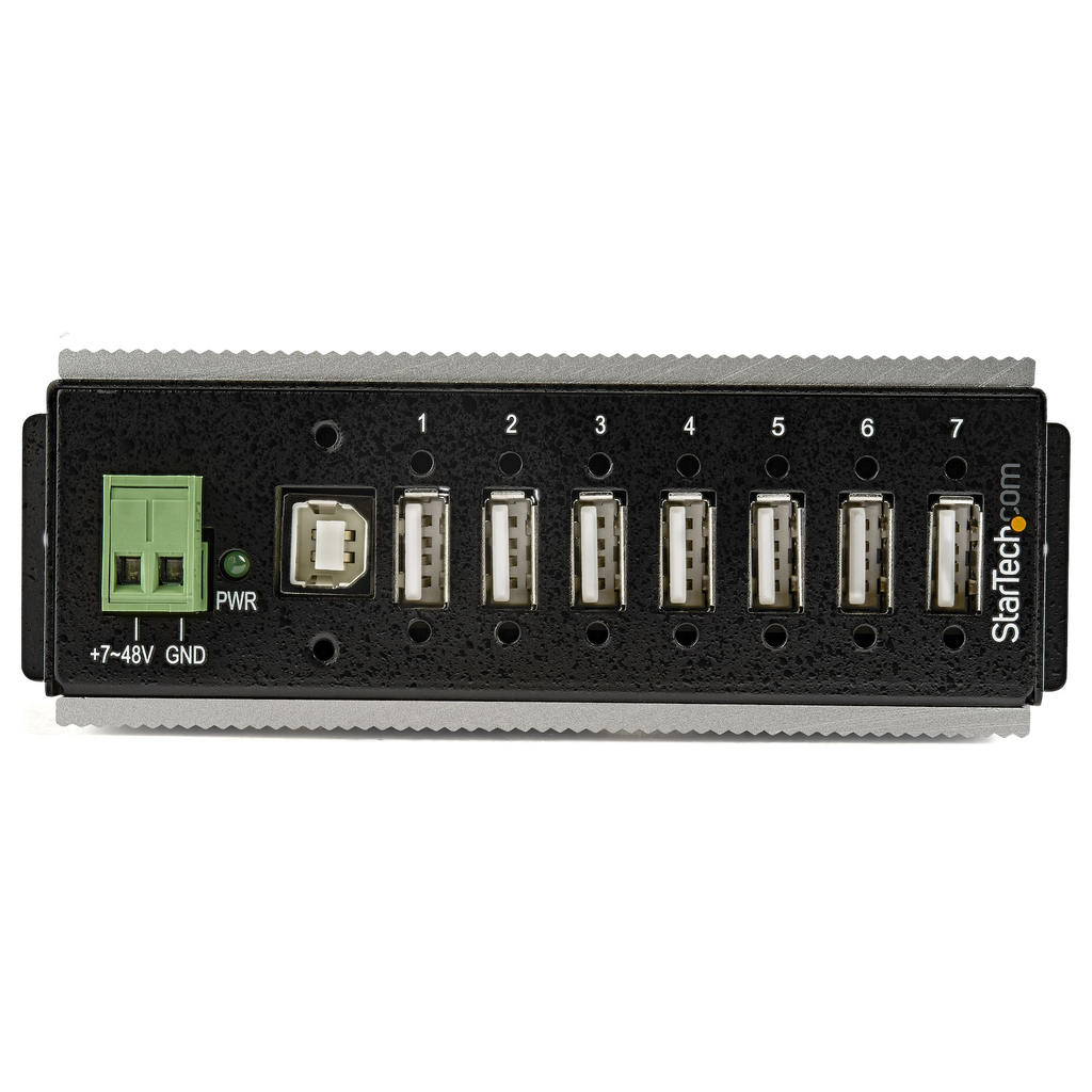 This industrial USB hub delivers reliable performance with a metal, heavy-duty housing. It supports wide-range 7-48V DC terminal block input, giving you the flexibility to power the hub as required, based on your own power input capabilities.