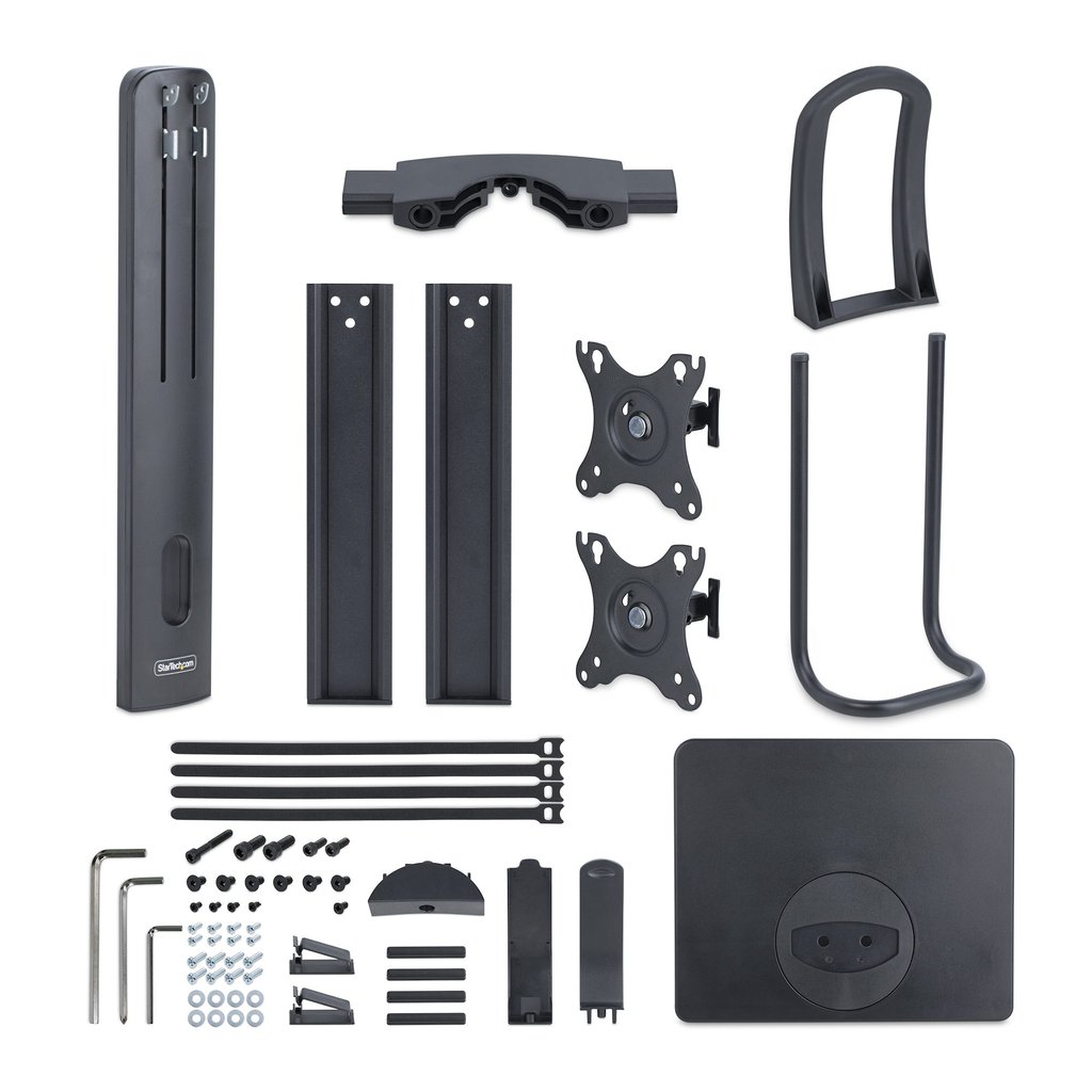 StarTech.com Crossbar Dual Monitor Desk Stand For Double 27-inch Screens, VESA Mount 75×75/100×100, Toolless Height Adjustment,