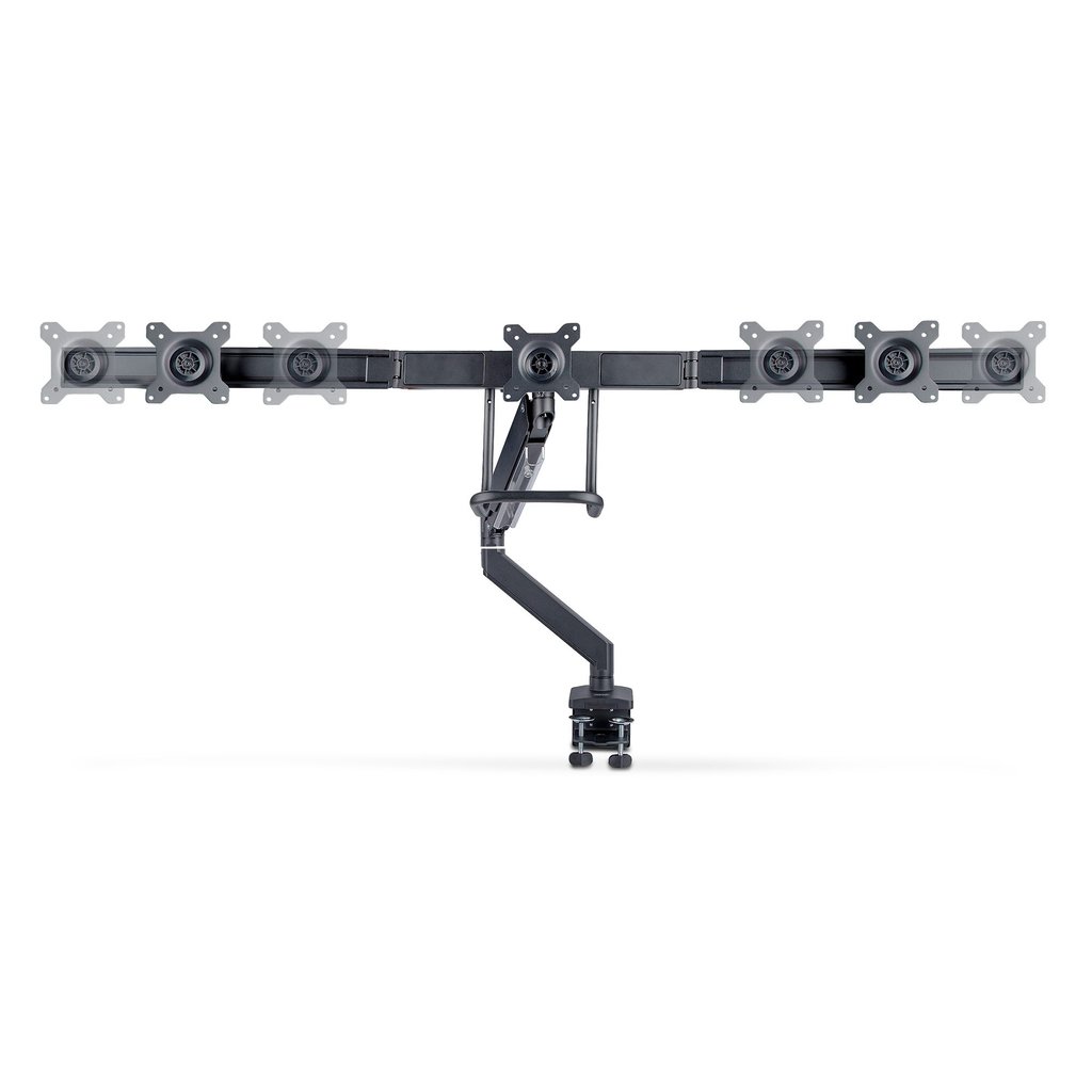 This triple monitor mount features micro height adjustment screws on the VESA plate that enable perfect alignment of all three monitors. This is ideal for bezel-less or slim bezel displays, helping to create a more extensive and seamless viewing area. The outer displays’ VESA mounts slide along the crossbar, allowing further adjustments.