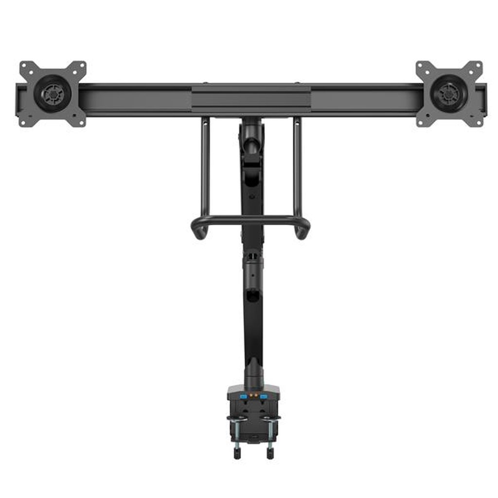 This desk mount dual monitor arm lets you mount two 17″ to 32″ VESA mount monitors, each weighing up to 17.6 lb. (8 kg), onto a single low-profile base. It gives you flexible desk-clamp or grommet-hole mounting, letting you save space while creating an ergonomic workspace in any office environment.