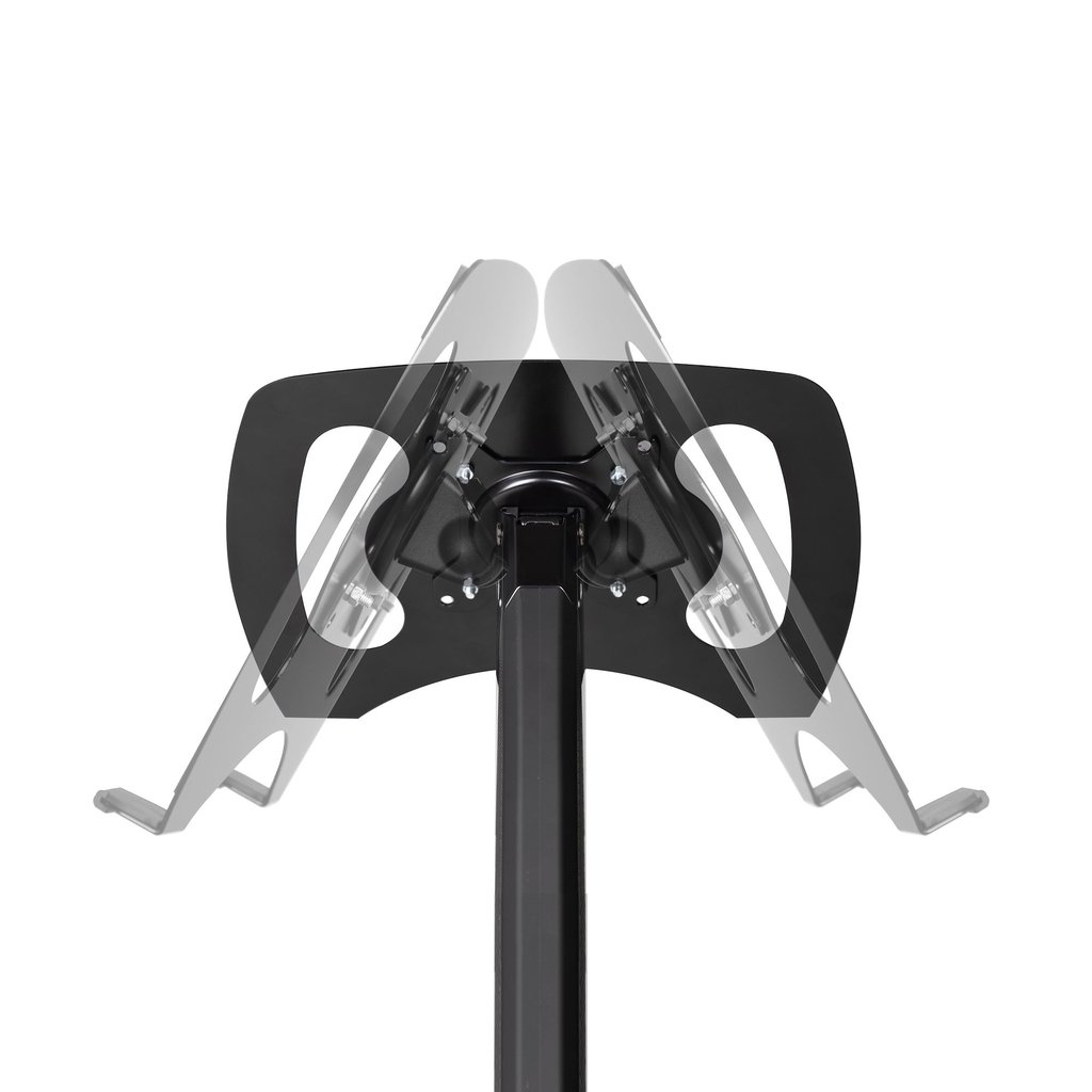 The VESA mount offers a full range of motion that will adjust to your setup and ergonomics needs, When using it as a notebook mount, your laptop will need additional security at steeper angles (not included).