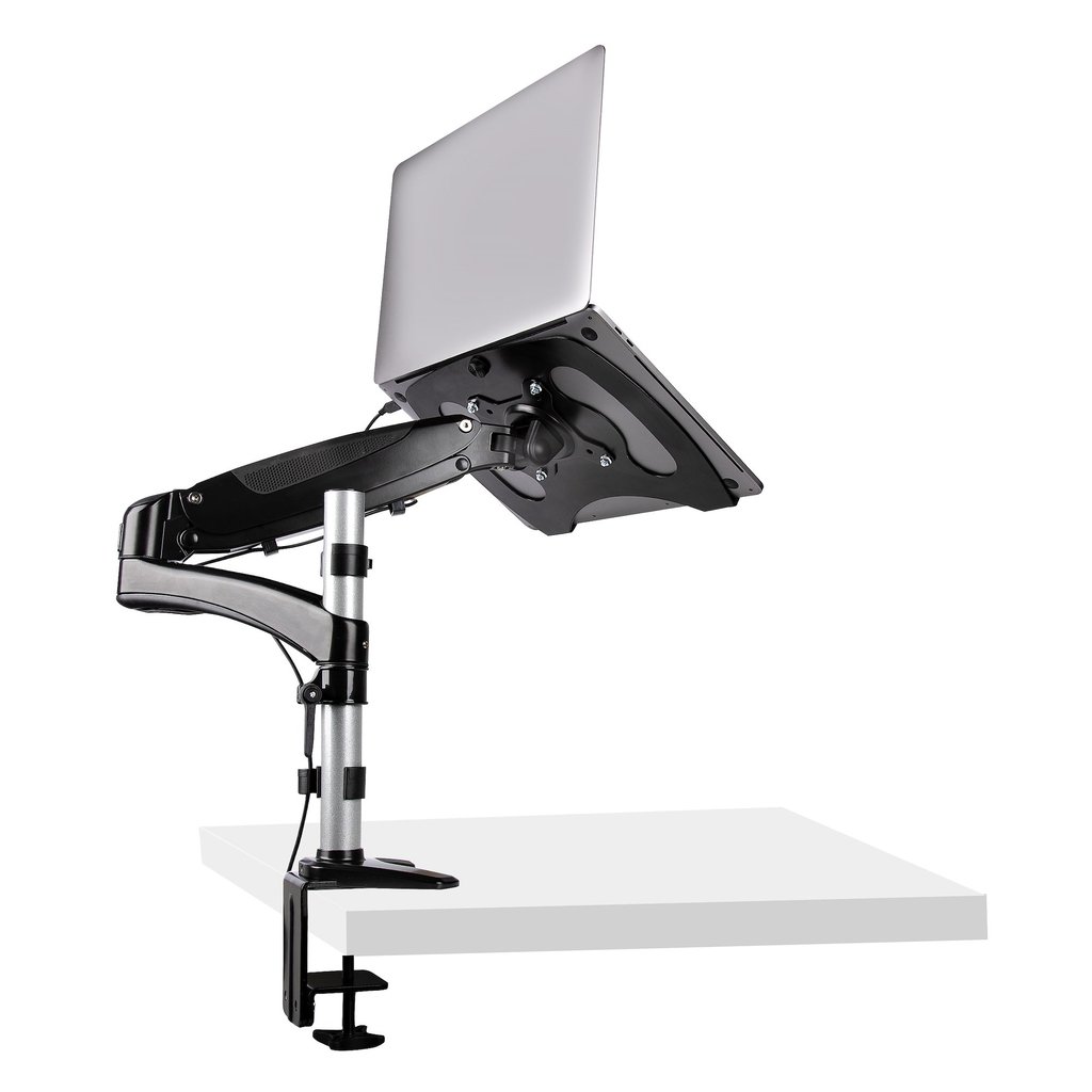 The laptop tray offers an area of 12.6″x9.5″ to support your laptop up to 17.7lb/8kg, and it is fully adjustable to your viewing angle and height. When not using this arm as a laptop mount, you can mount monitors up to 34″.