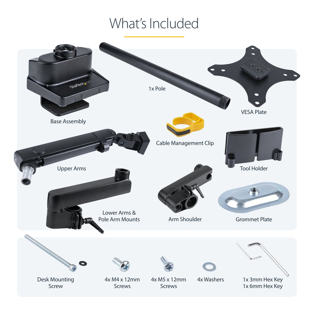 Work in comfort with this height adjustable monitor stand that lets you raise or lower the monitor arm along the pole, up to 24.4” (620 mm).