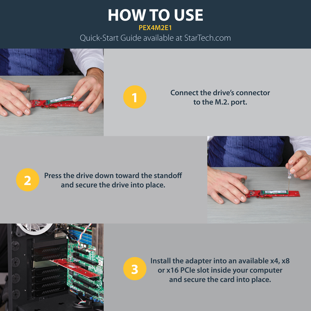 The PEX4M2E1 is backed by a StarTech.com 2-year warranty and free lifetime technical support.