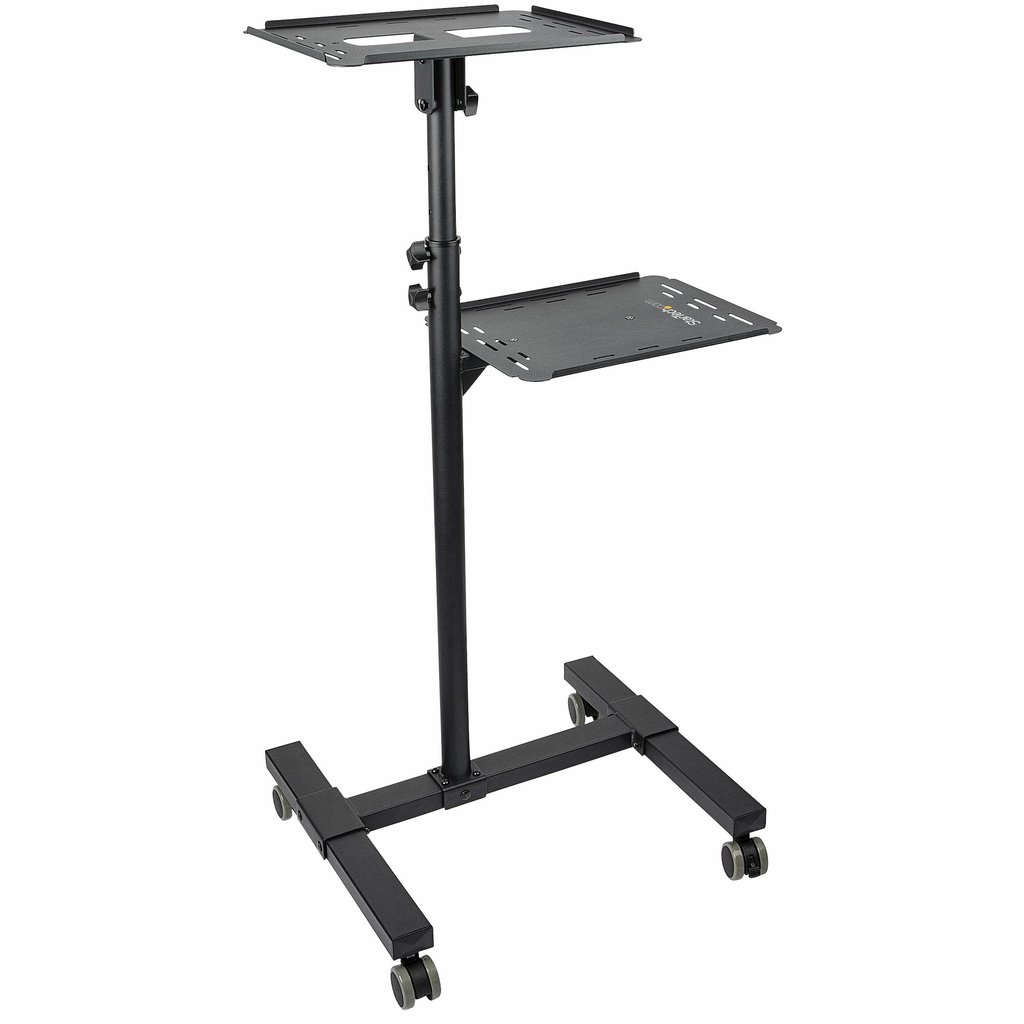 StarTech.com Mobile Projector and Laptop Stand/Cart – Heavy Duty Portable Projector Stand (2 Shelves, hold 22lb/10kg each) – Height Adjustable Rolling Presentation Cart w/Lockable Wheels (ADJPROJCART)