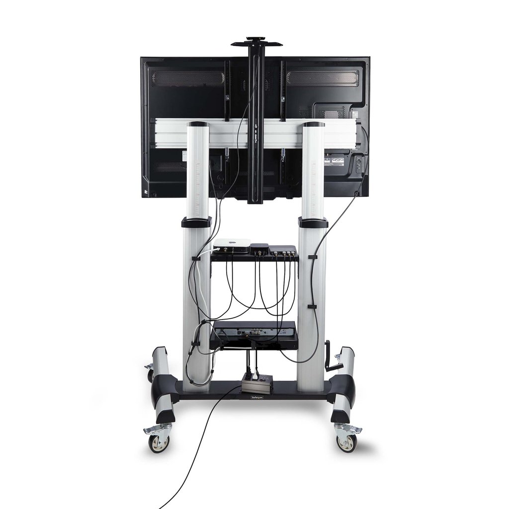 StarTech.com Rolling TV Cart/Stand On Wheels, Up to 100-inch/220lb Flat Screens, Hand Crank Height Adjustable Mobile Trolley
