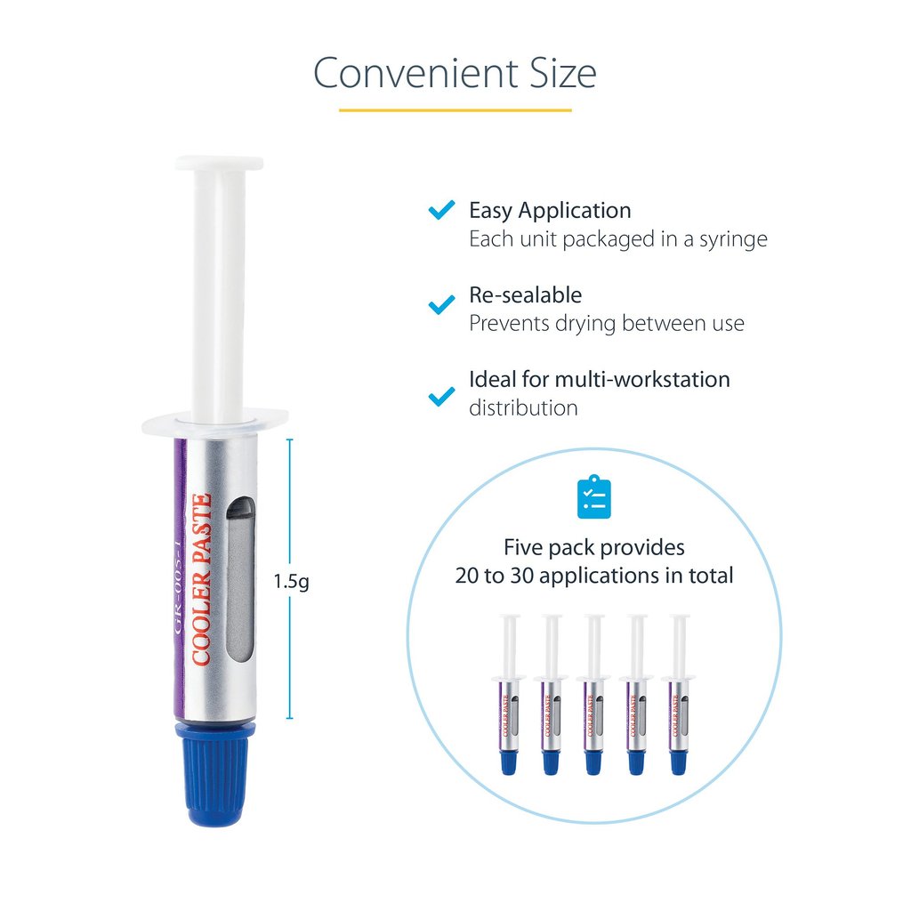 StarTech.com Thermal Paste, Pack of 5 Re-sealable Syringes (1.5g / each), Metal Oxide Compound, CPU Heat Sink Thermal Grease Pa