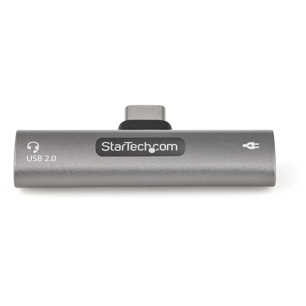 This USB C audio adapter with 60W power delivery features a USB Type-C™ audio port for your headset, audio out or data transfer, while allowing you to charge your laptop, tablet, or smartphone at the same time.