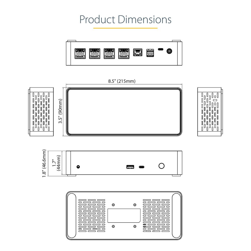 USB-C dock features optimized ventilation on both ends and bottom side of dock to provide cooling support to higher temperature thermals that can be generated by high performance video/graphics applications and multiple 4K 60Hz video outputs.