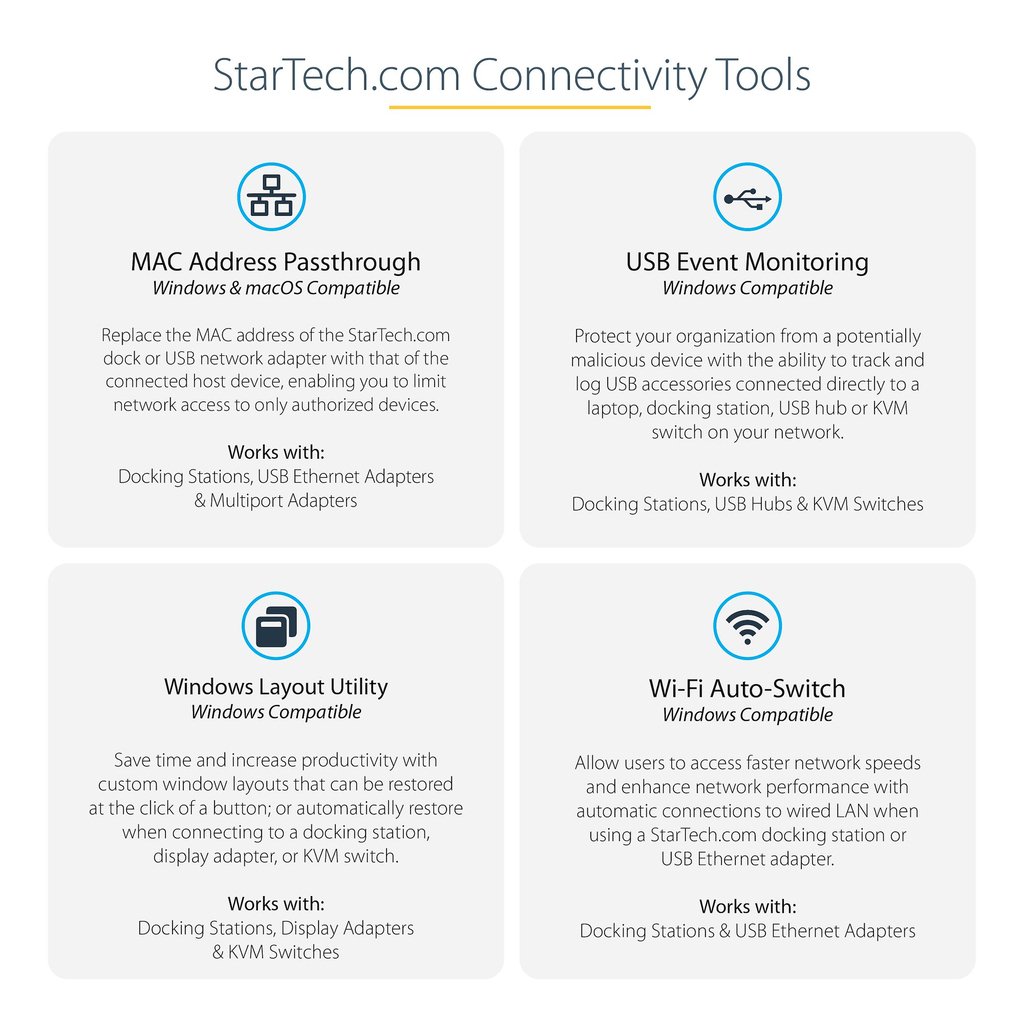 Developed to improve performance and security, StarTech.com Connectivity Tools is the only software suite on the market that works with a wide range of IT connectivity accessories. The software suite includes: